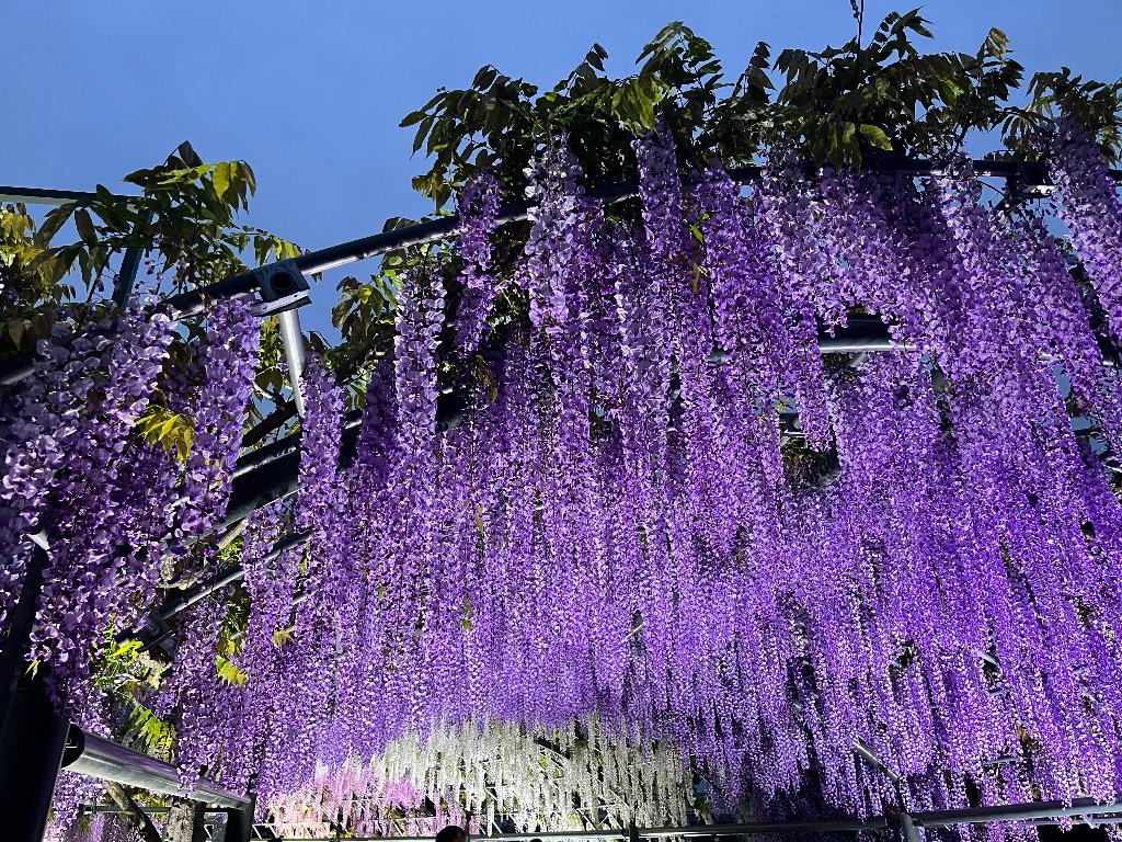 太陽の下で見る花も綺麗だけどライトアップされた藤の花も凄く神秘的で綺麗でした✨✨✨