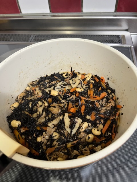 ピザとサラダと娘が作ってくれたヒジキをお供に…😊